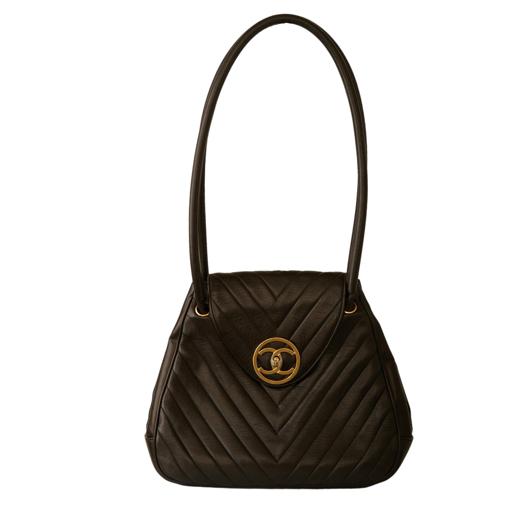 Chanel Black Chevron Quilted Jumbo Bag