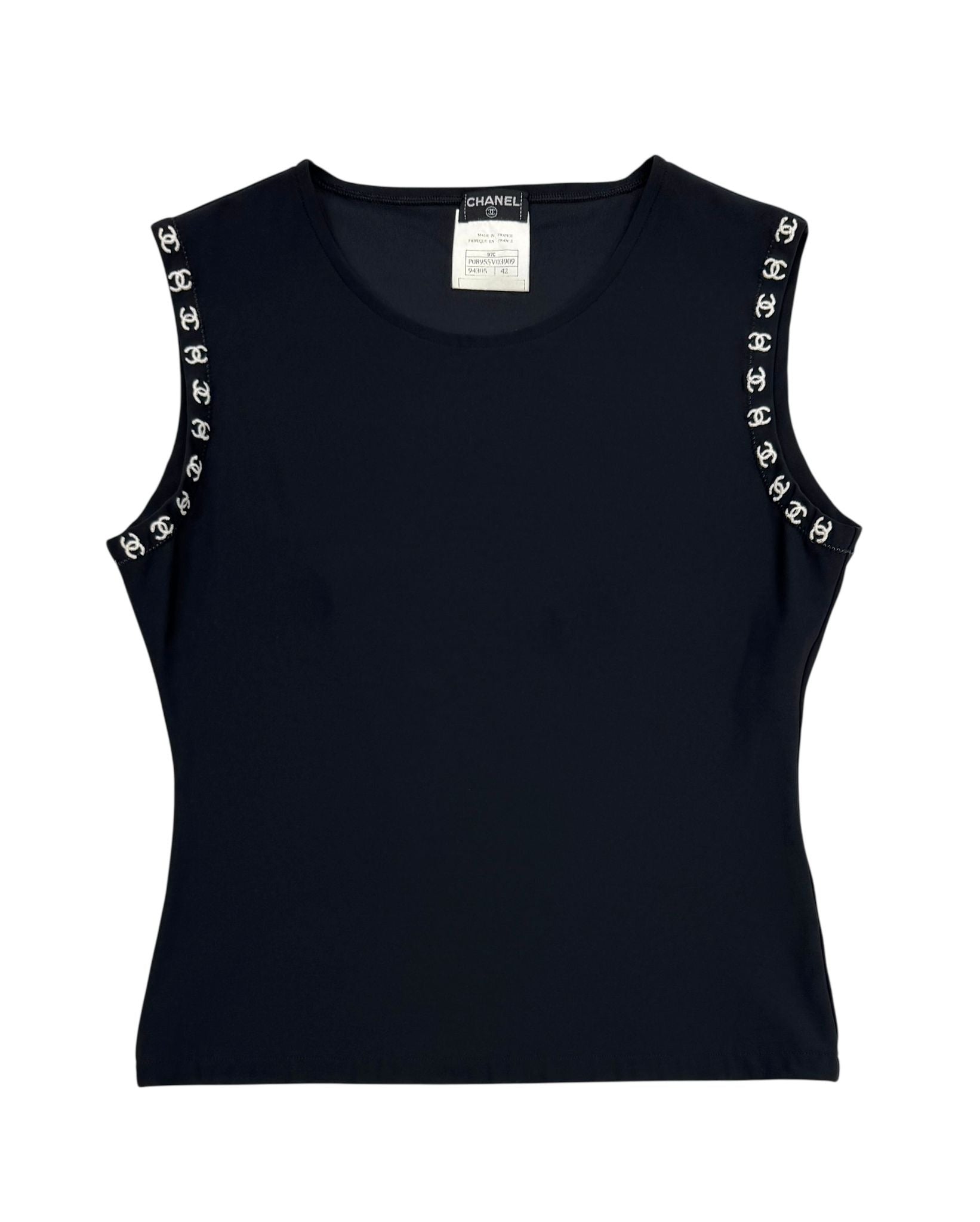 Chanel Black Ringer Logo Tank Top