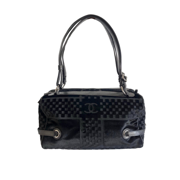 Chanel Black Velvet Textured Shoulder Bag