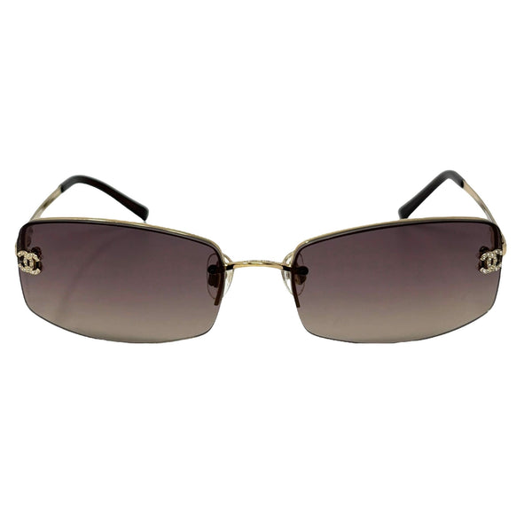 Chanel Deep Purple Mini Rhinestone Rimless Sunglasses