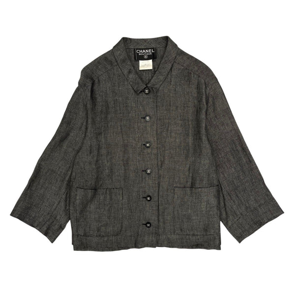 Chanel Grey Logo Button Shirt Jacket