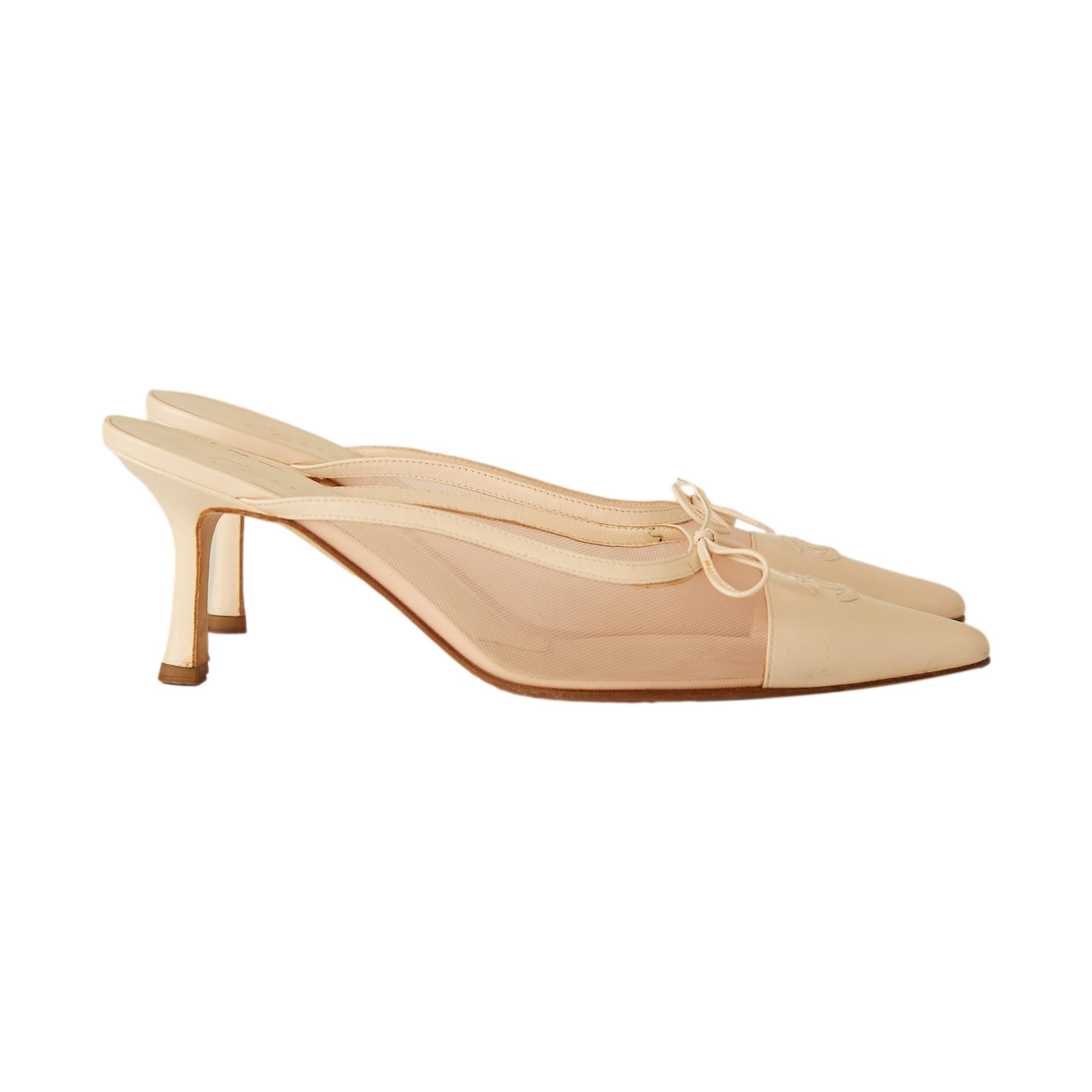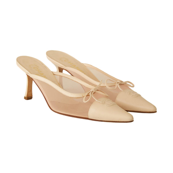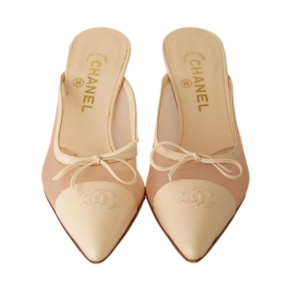 Chanel Leather + Mesh Ballerina Pink Kitten Heels