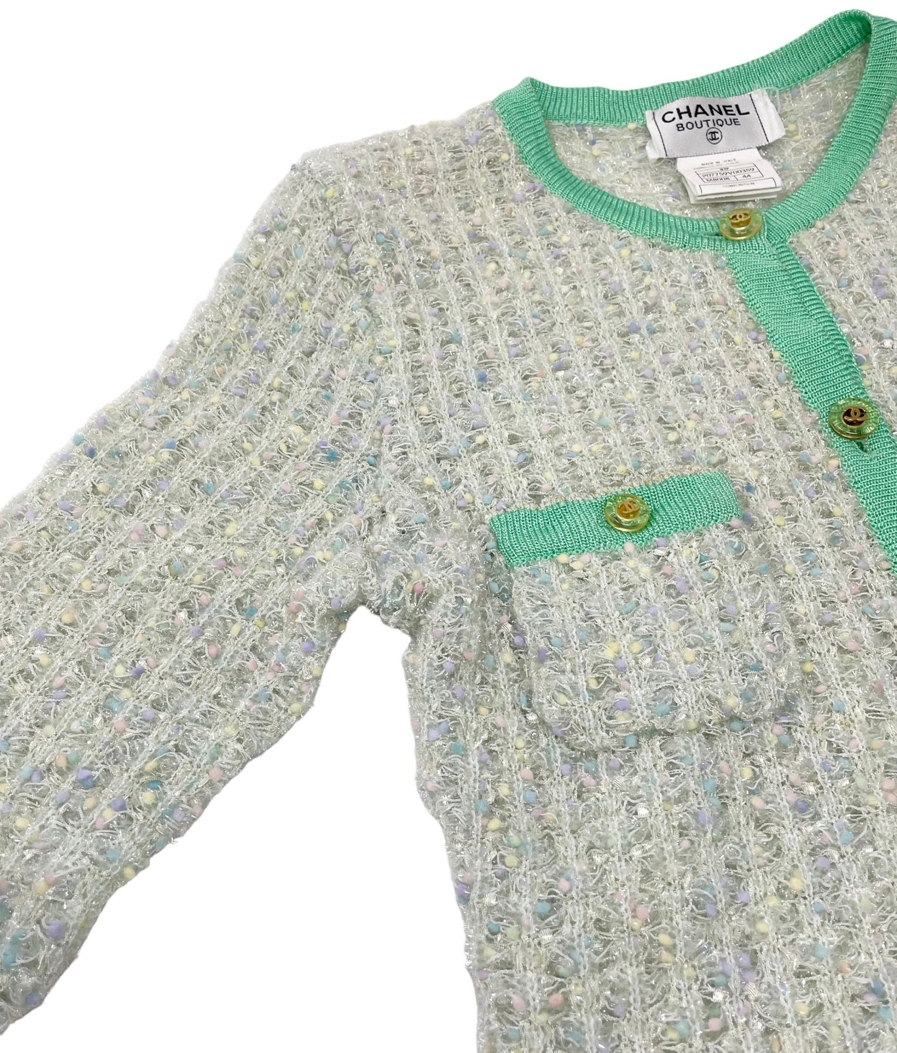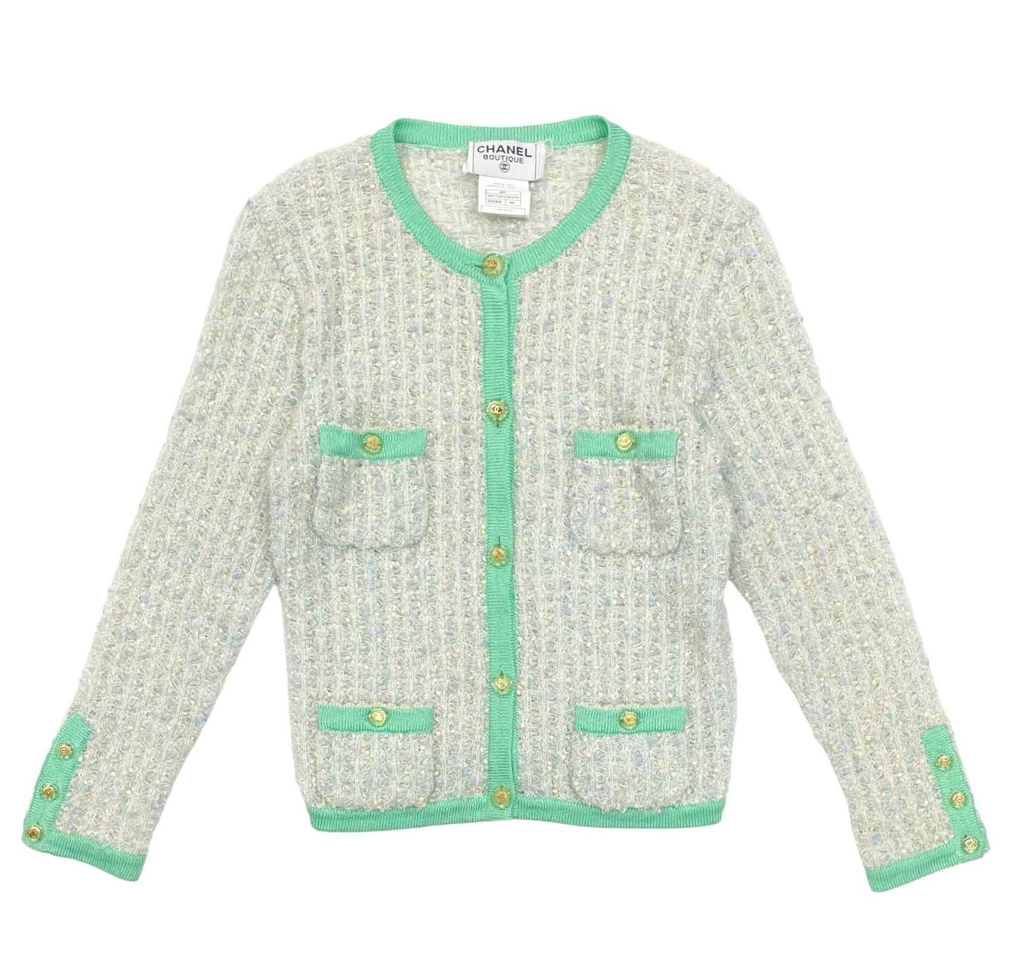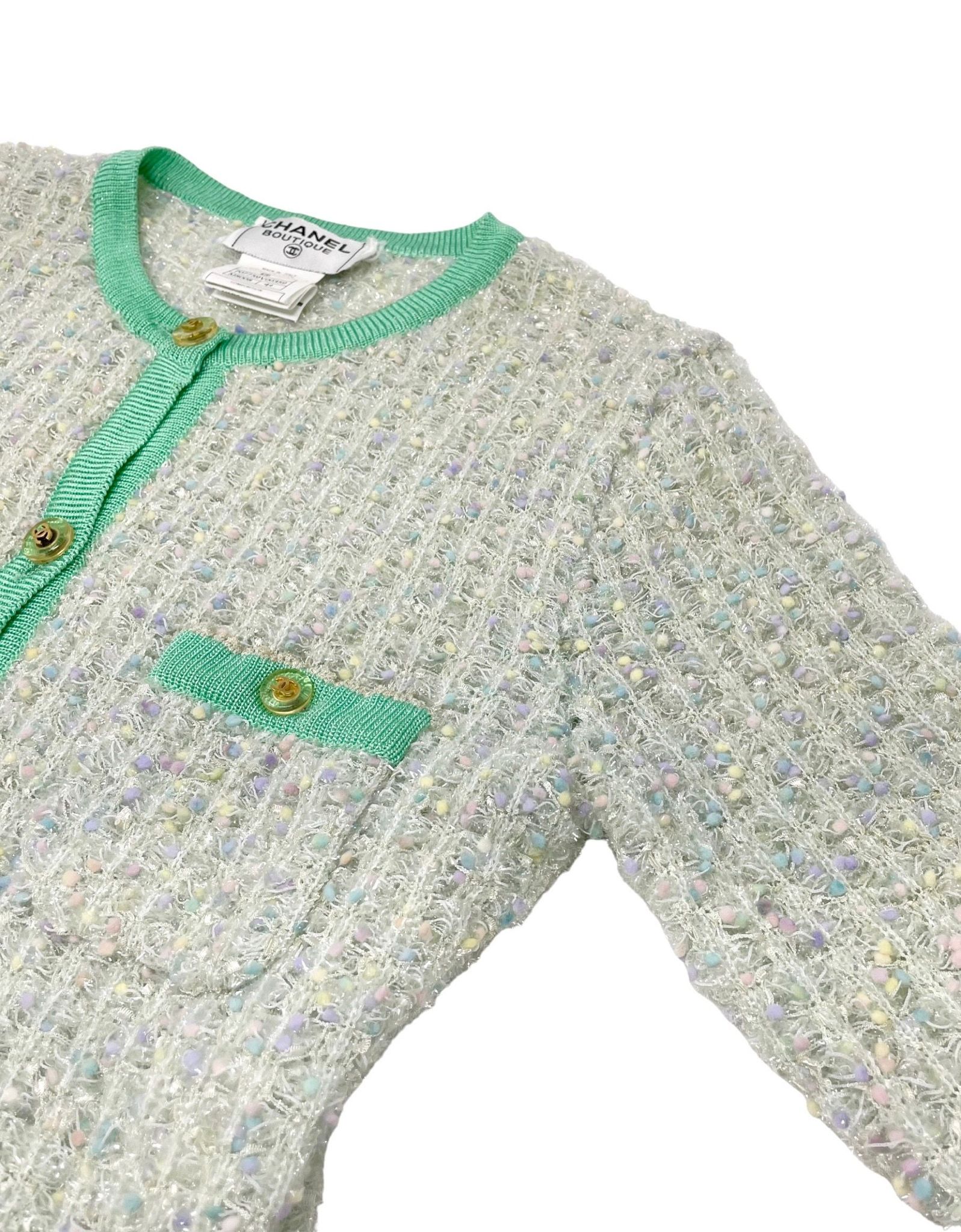 Chanel Sea Foam Textured Logo Cardigan