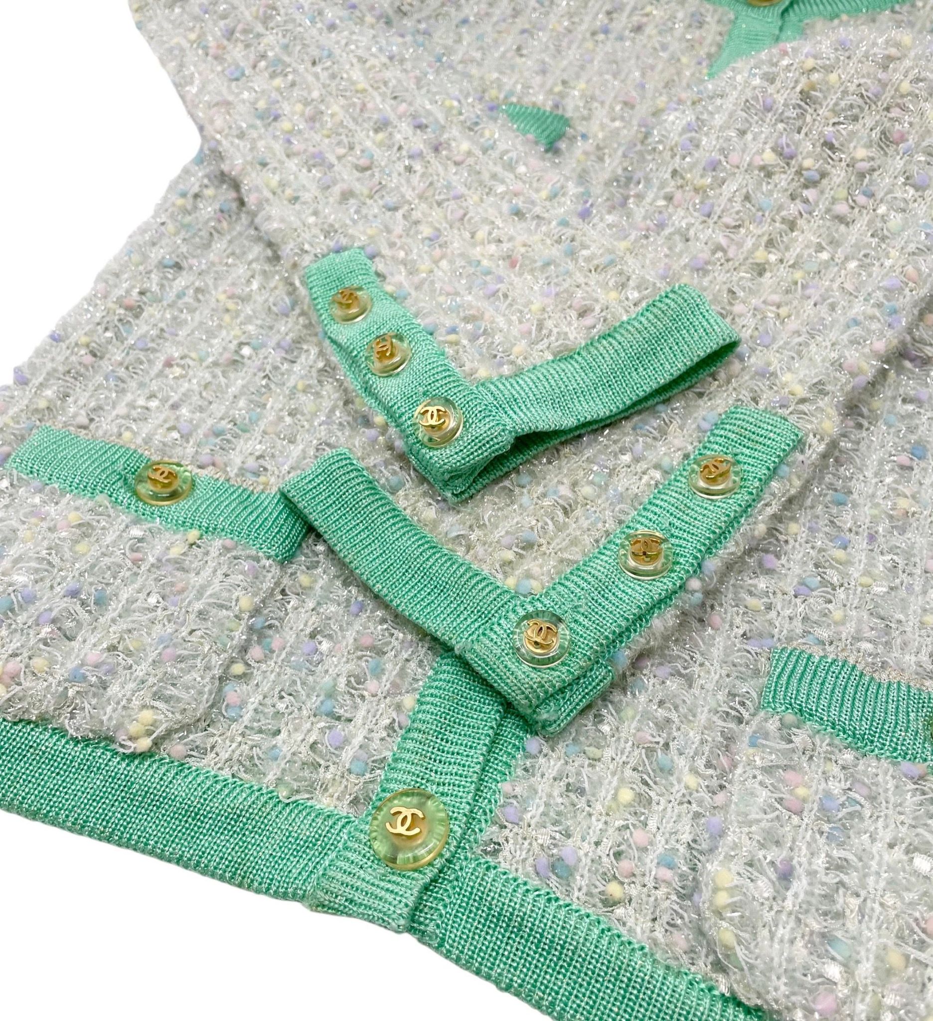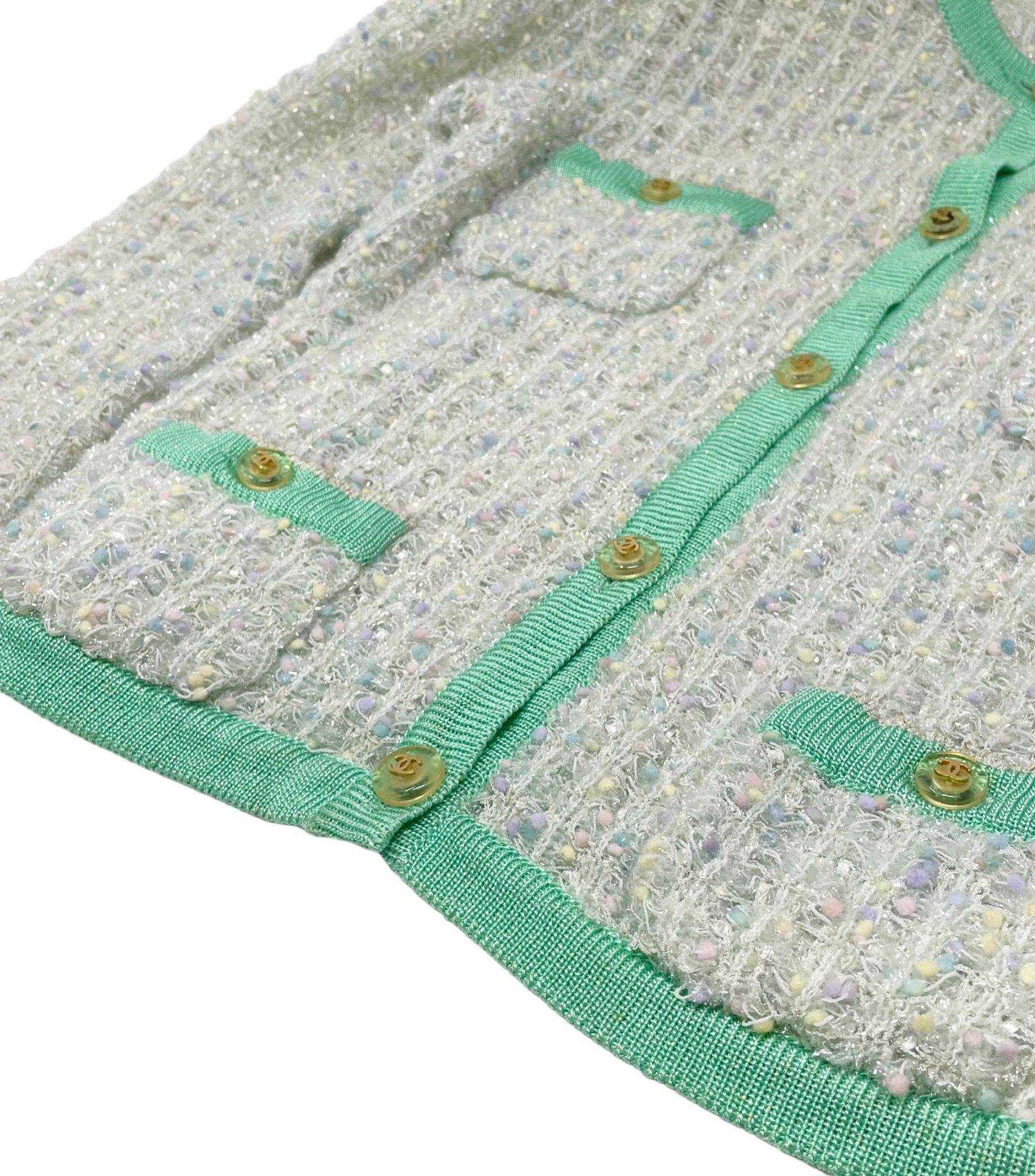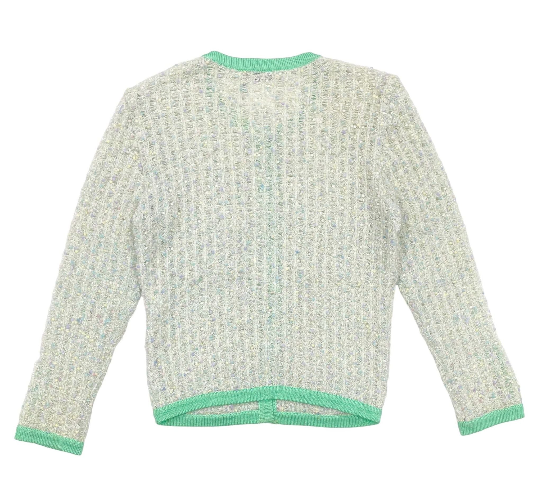 Chanel Sea Foam Textured Logo Cardigan