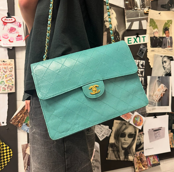 Chanel Turquoise Caviar Jumbo Flap Bag