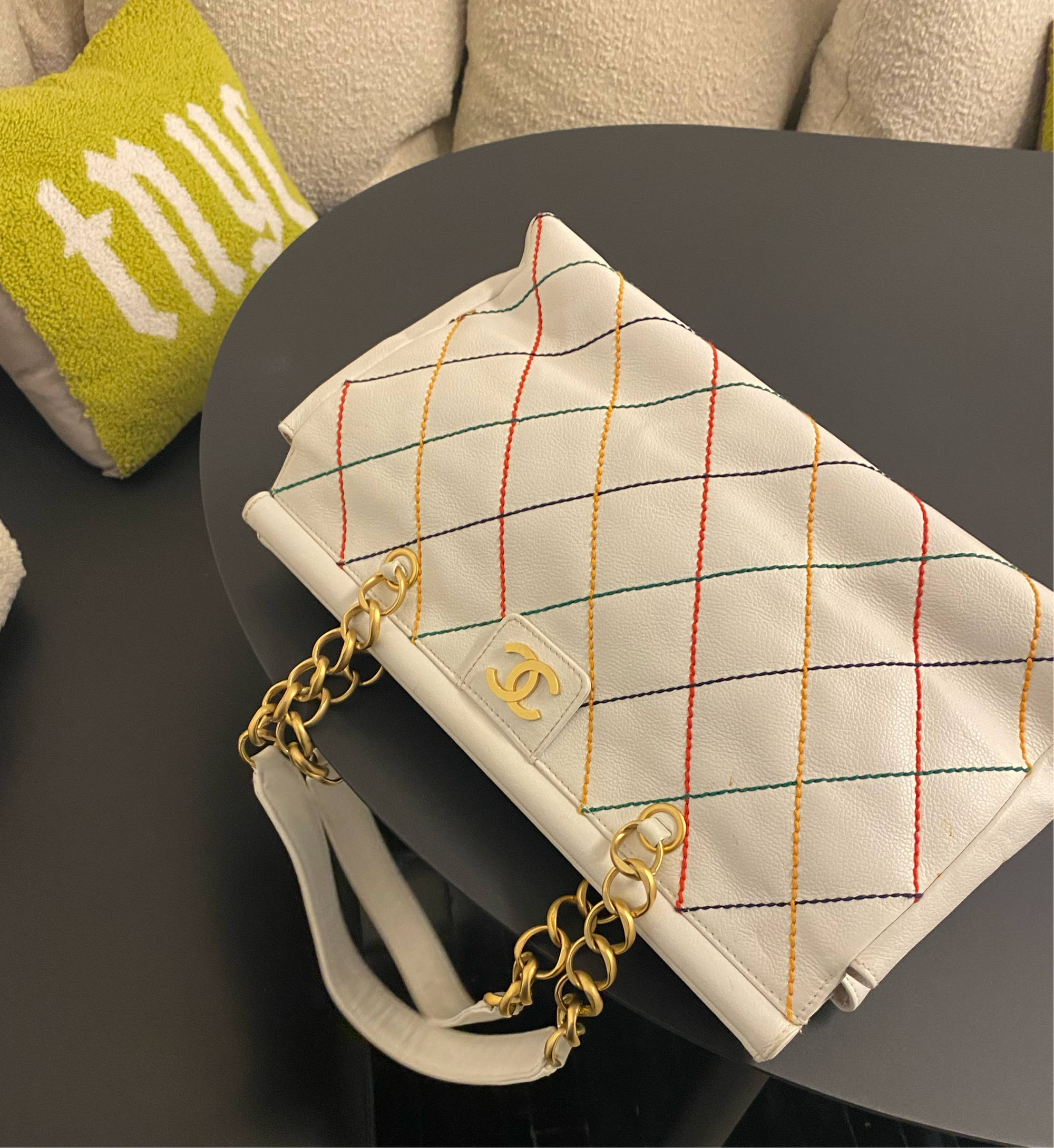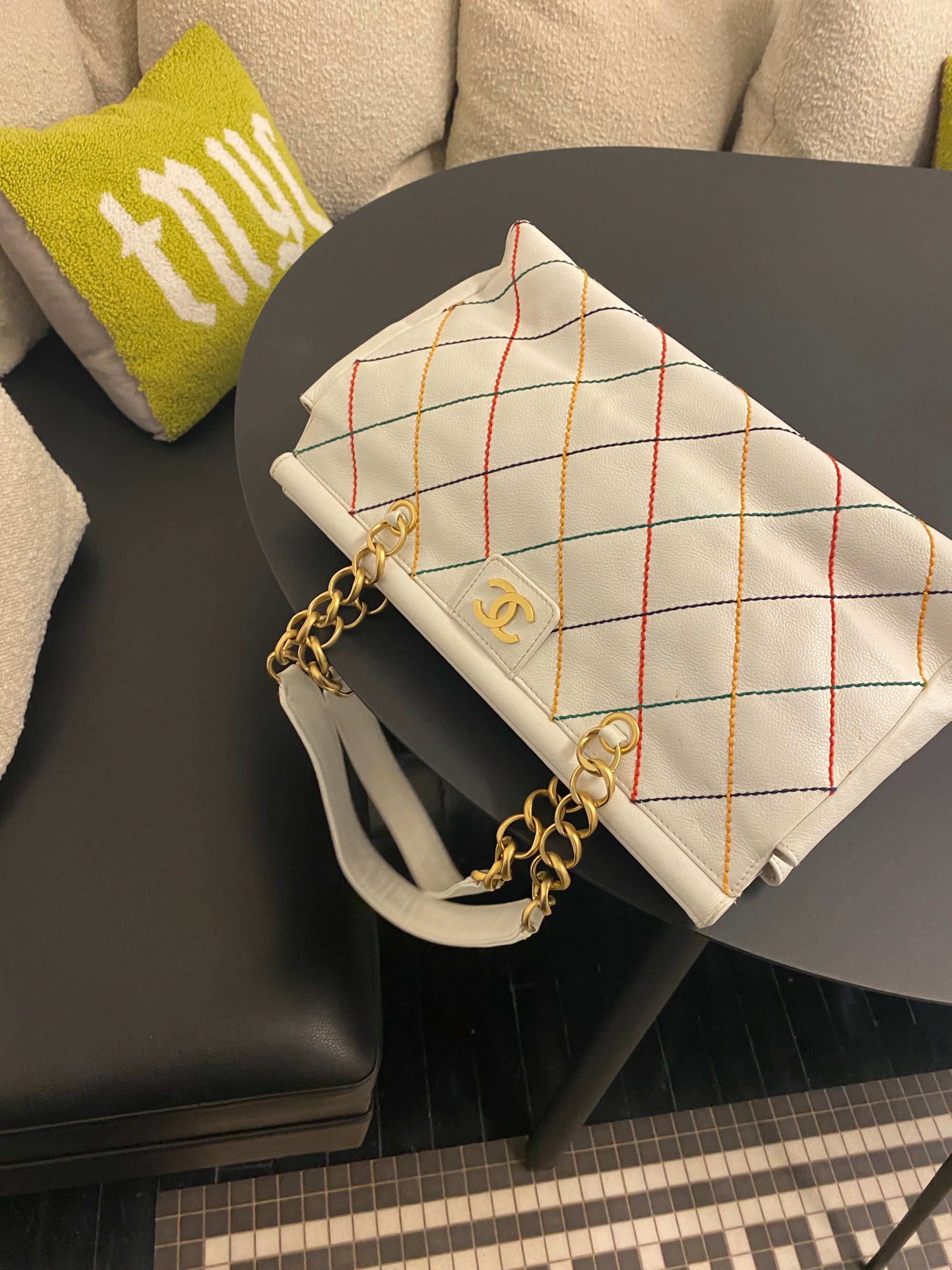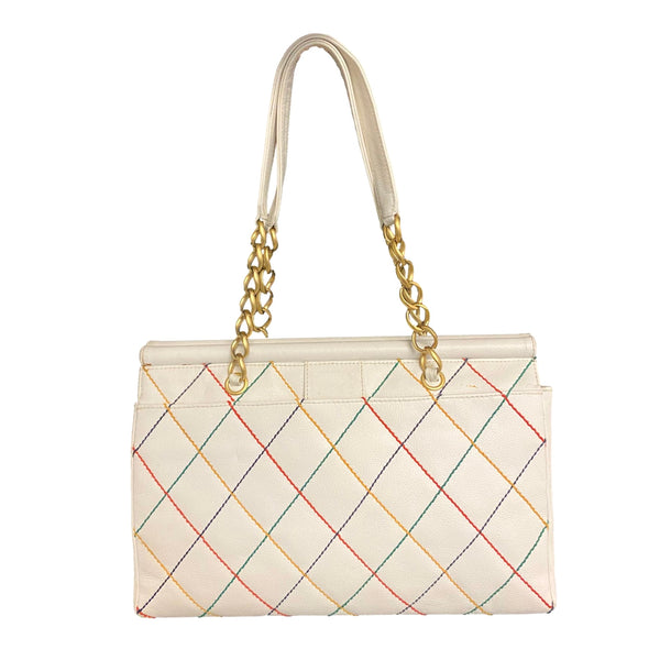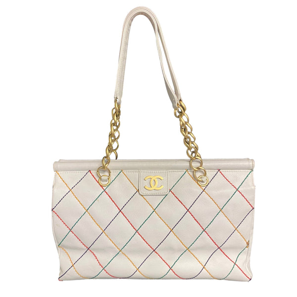 Chanel White Caviar Multi Stitch Shoulder Bag