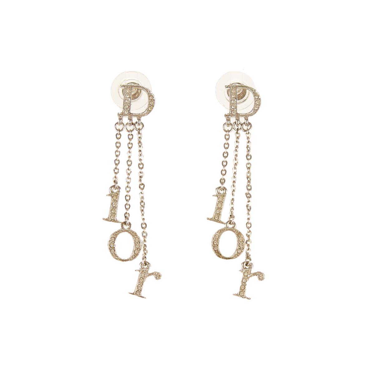 Dior Silver Logo Rhinestone Earrings