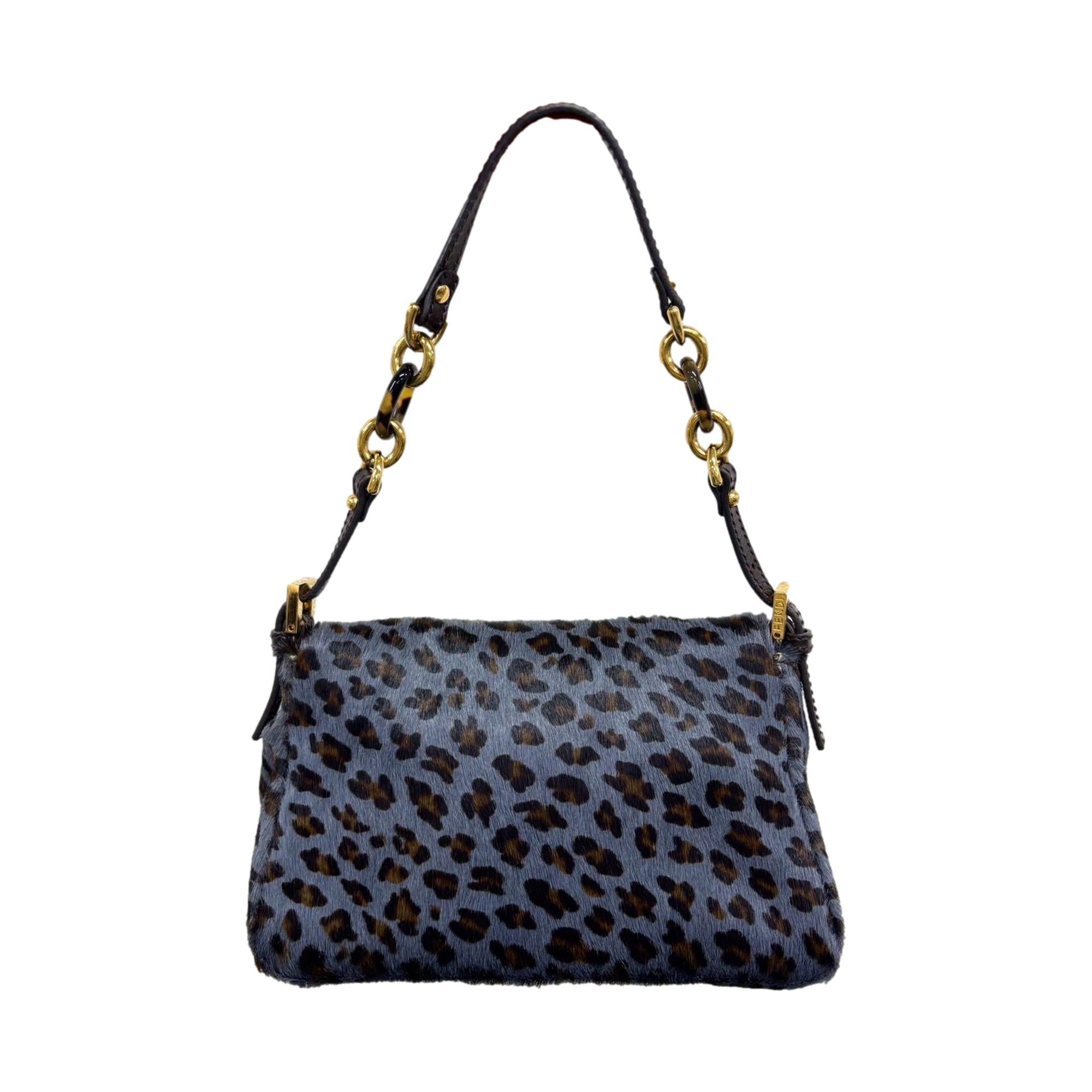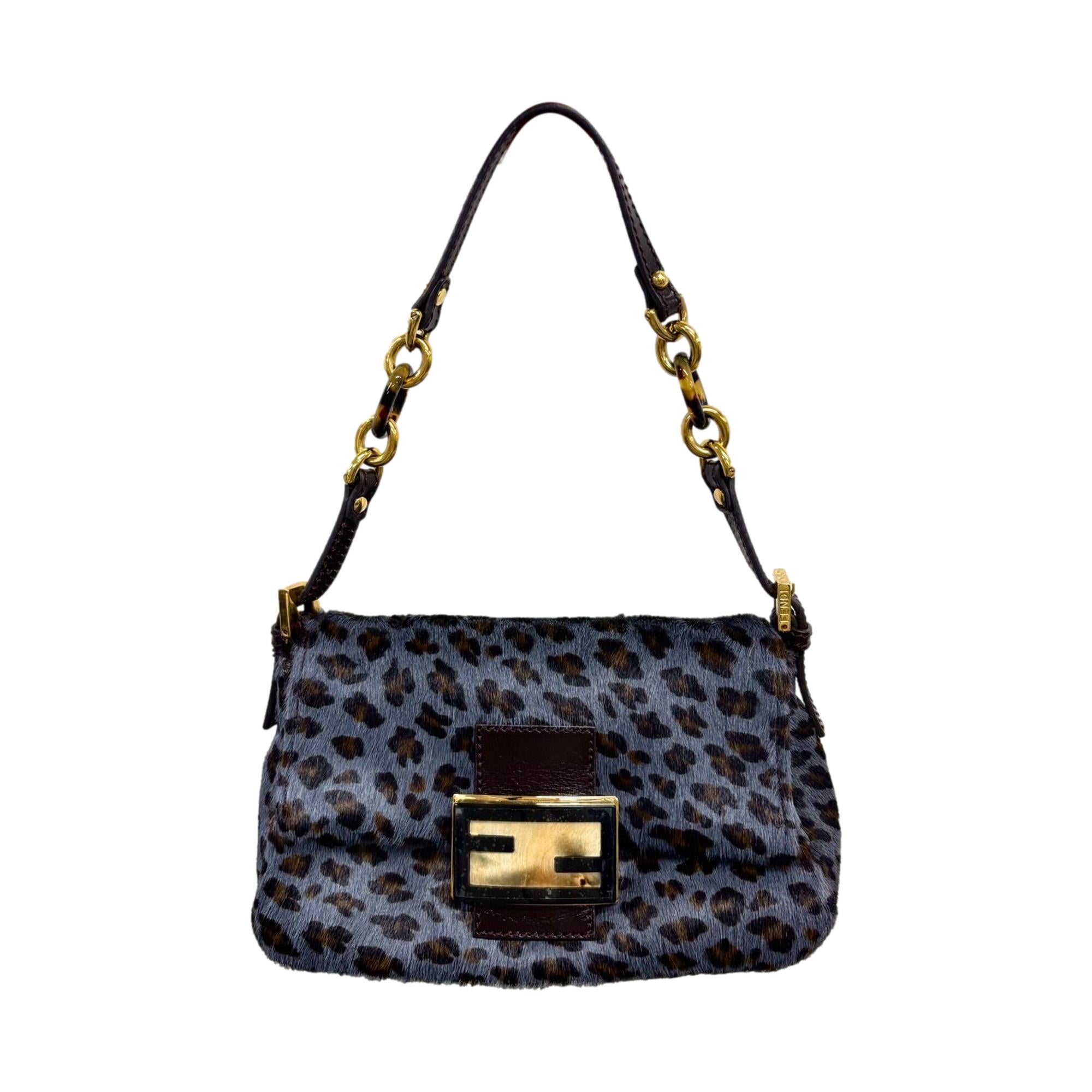 Fendi Blue Cheetah Mama Mini Baguette Bag