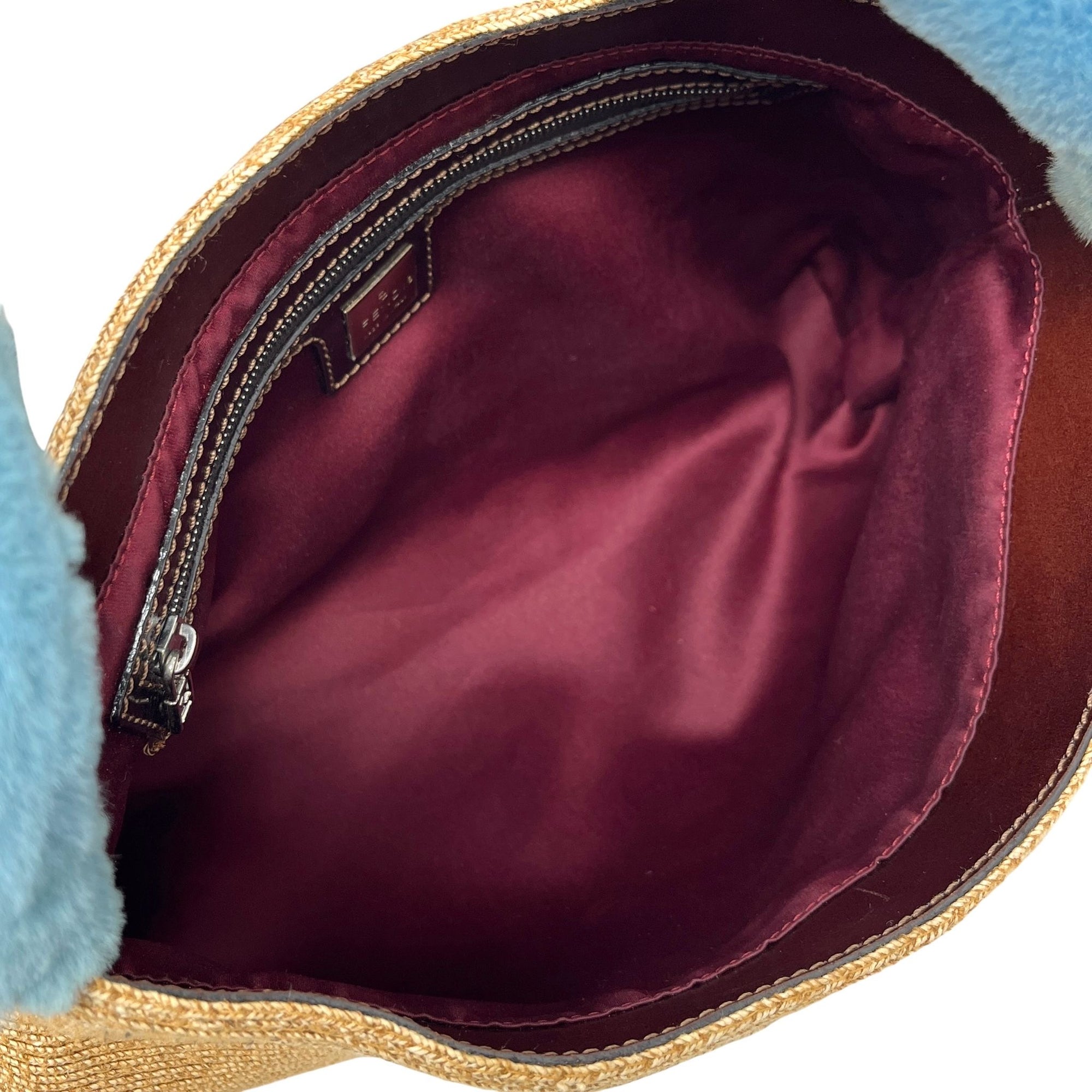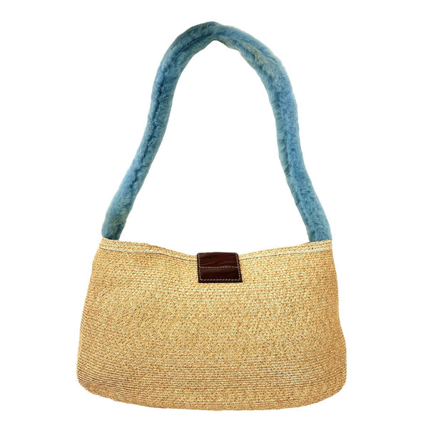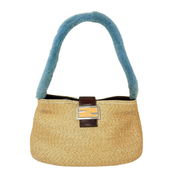 Fendi Rafia + Blue Fur Shoulder Bag