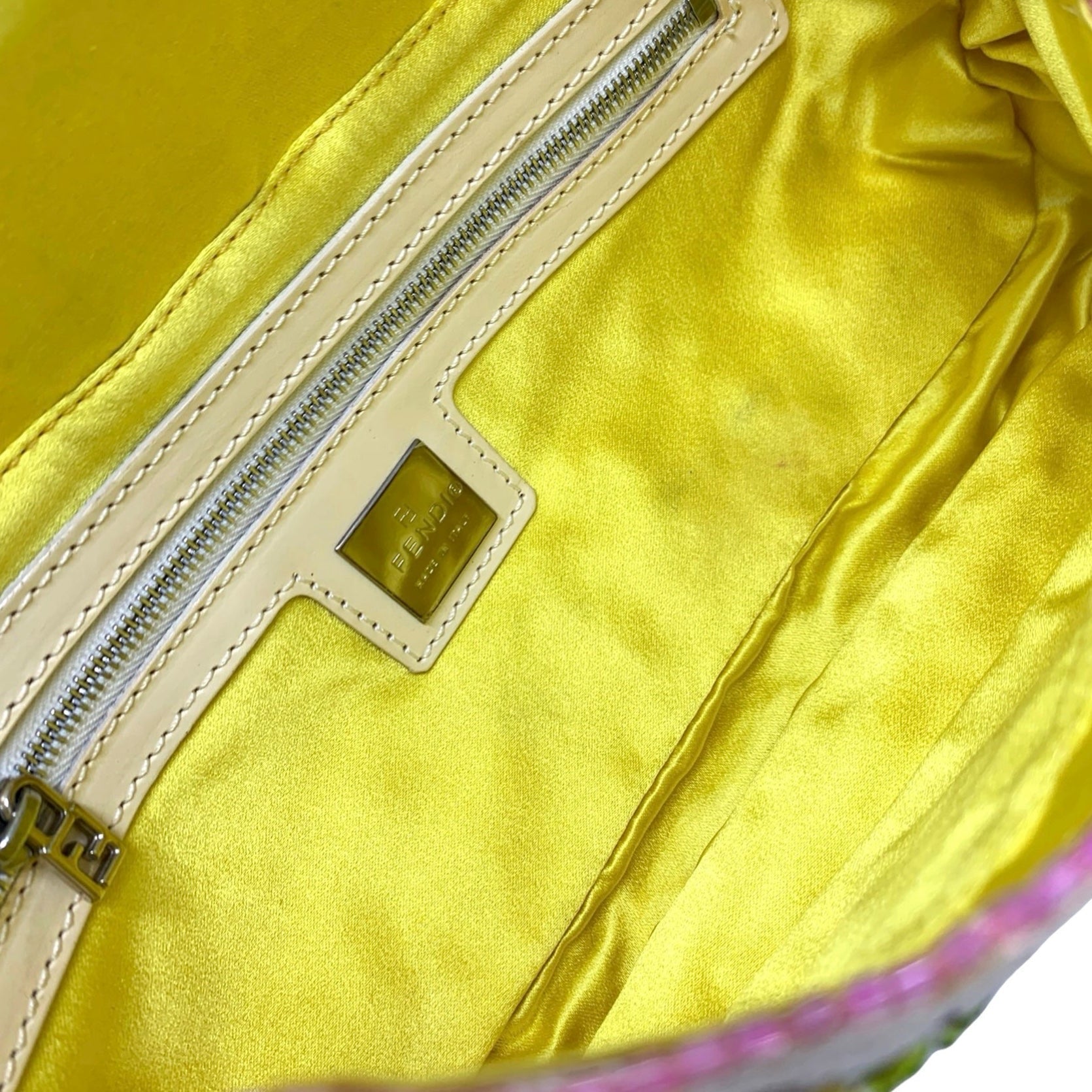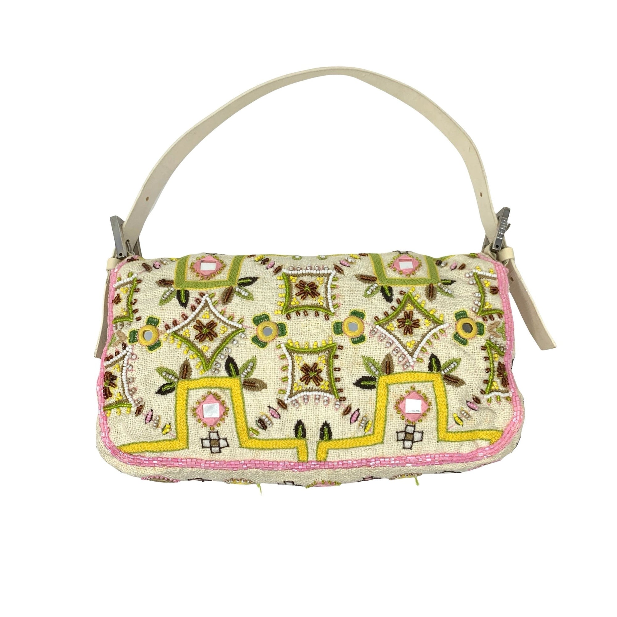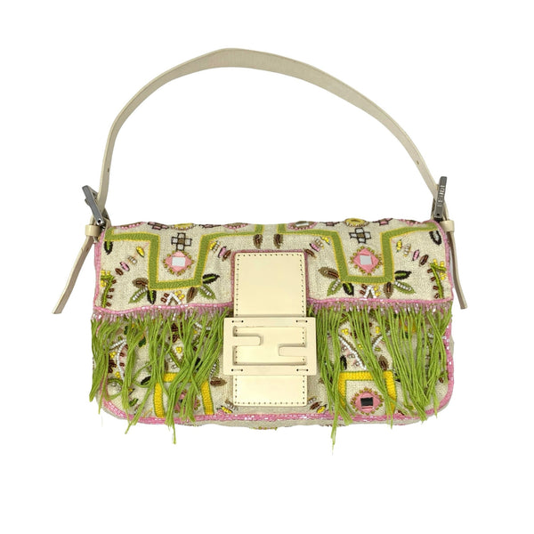 Fendi White Fringe Embroidered Baguette Bag