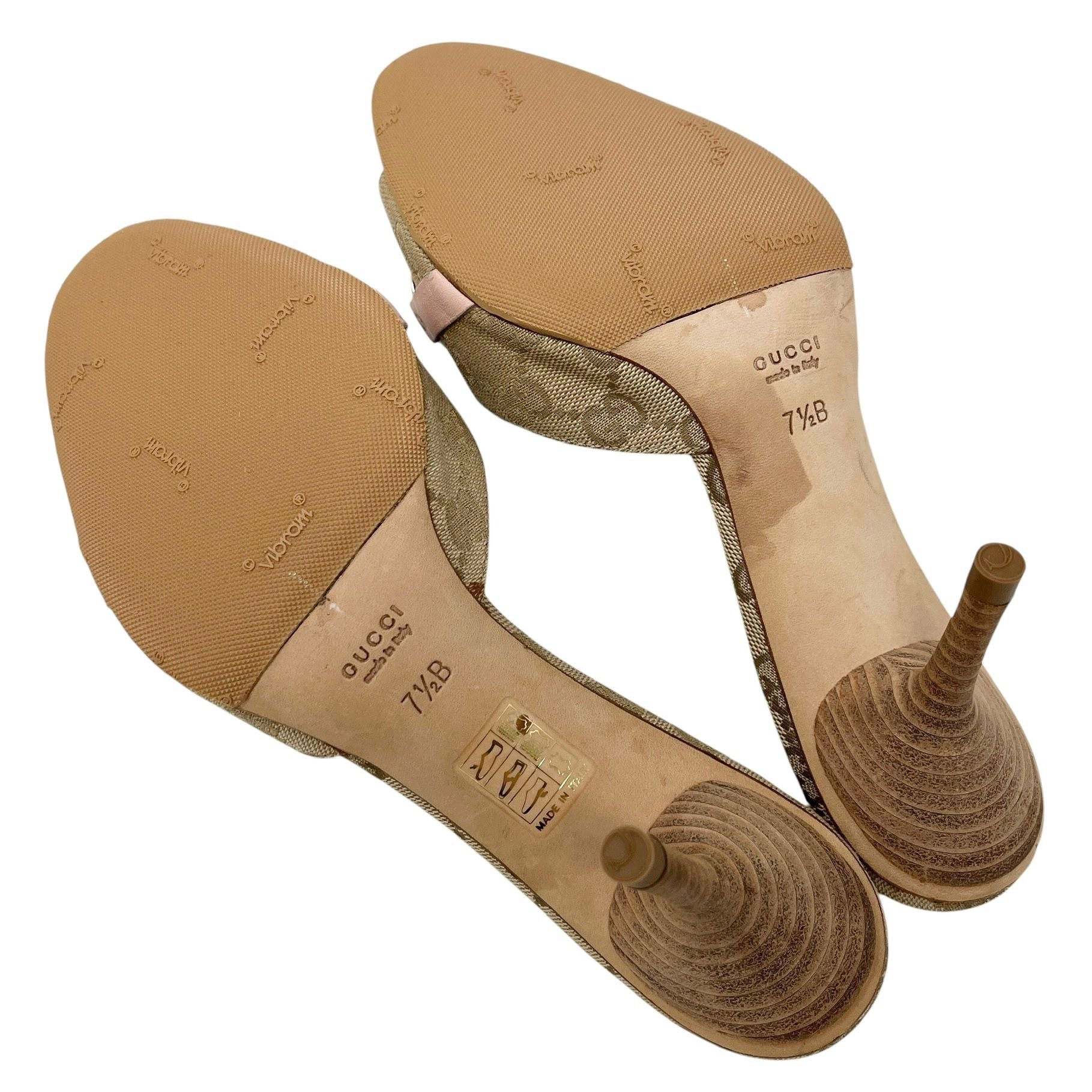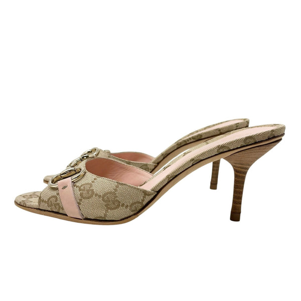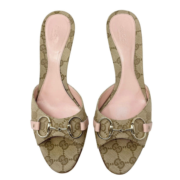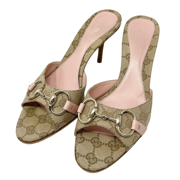 Gucci Tan Logo Horsebit Heels