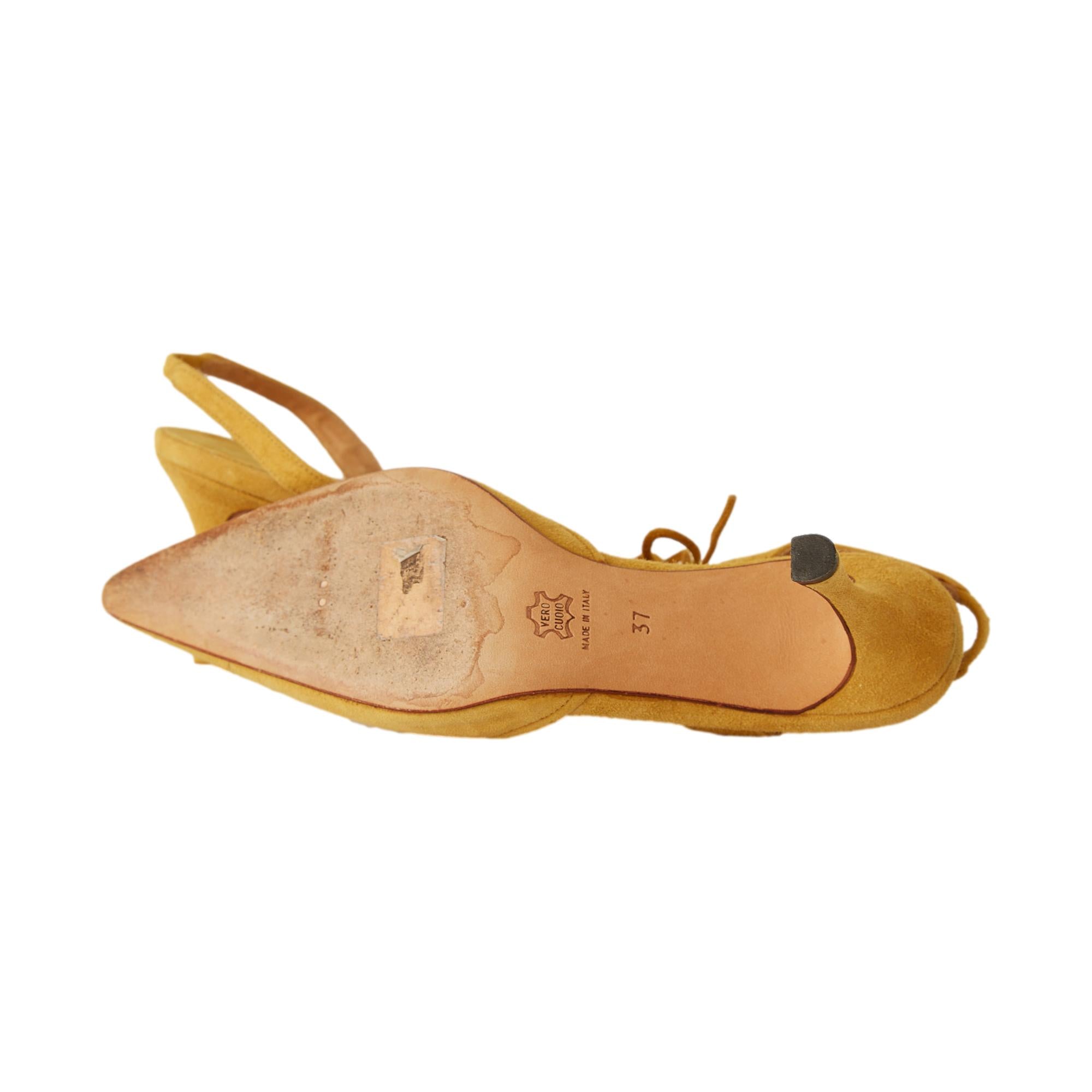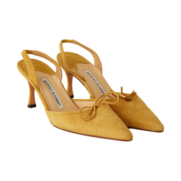 Manolo Blahnik Suede Mustard Yellow Bow Heels