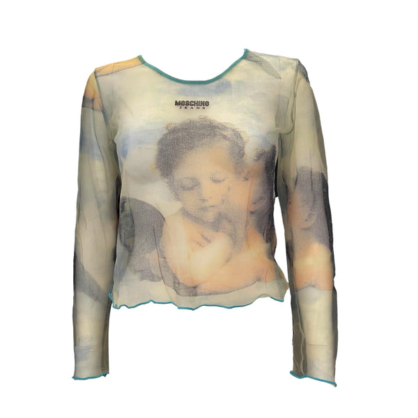 Moschino Blue Cherub Mesh Crop Long Sleeve
