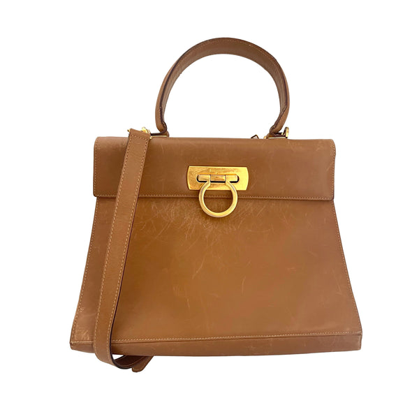 Salvatore Ferragamo Brown Structured Top Handle Bag
