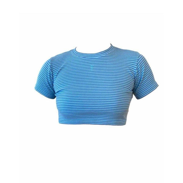 YSL Baby Blue Stripe Logo Crop Top